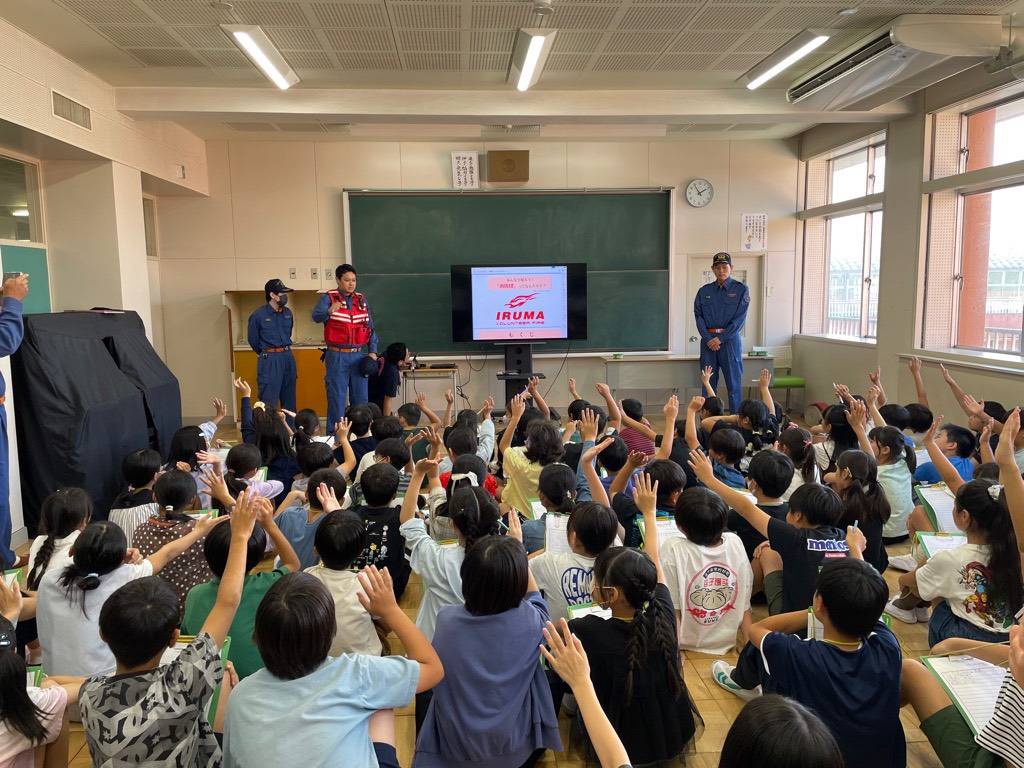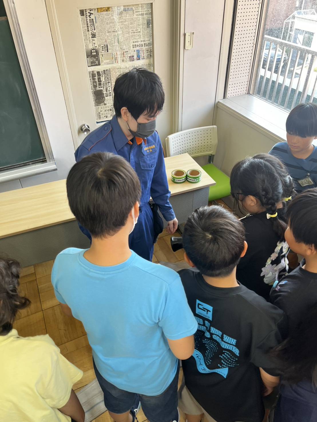 消防団の活動説明では、「みんな消防団と消防士の違いってわかる?」と問いかけると、「消防団は防災のために頑張っている地域の人!」と元気に答えてくれました。