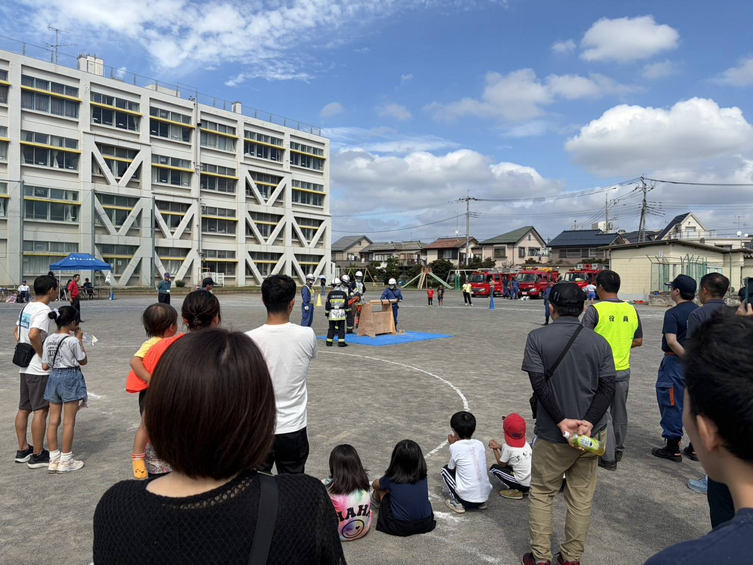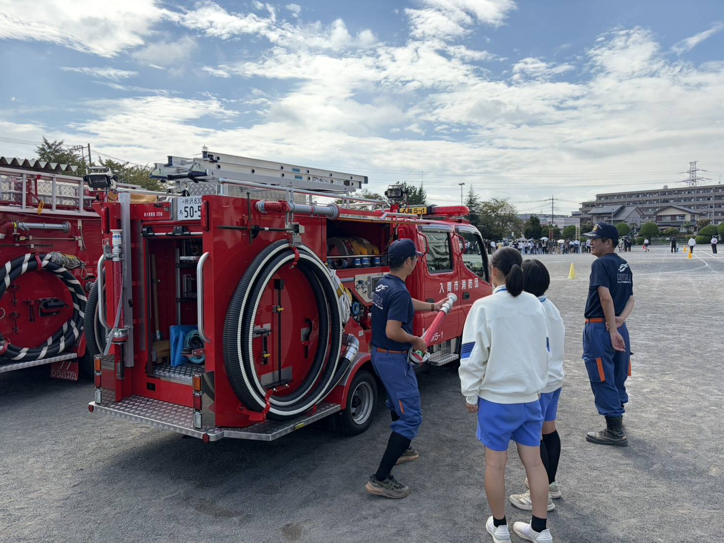 警備の他、AED体験、消防車乗車体験を行いました。
